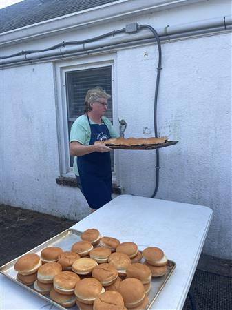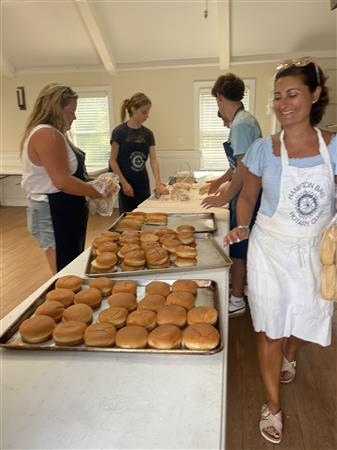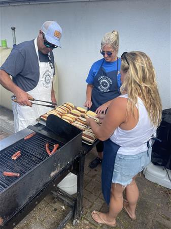 Club members, their families and friends pitched in Summer of 2024 to cook and serve a BBQ dinner for campers and counselors at Rotary's Camp PaQuaTuck in Center Moriches.